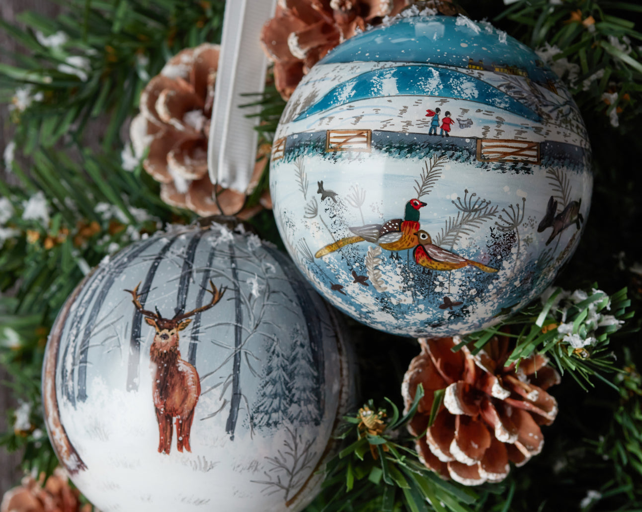 Our signature range of glass baubles are hand painted from the inside, using a traditional artisan method dating back hundreds of years.